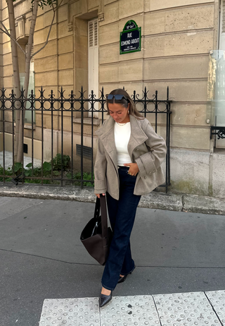 Dobbel knappelukking. Brede mansjetter med knappedetaljer. Hoftelang. Strukturert passform.
