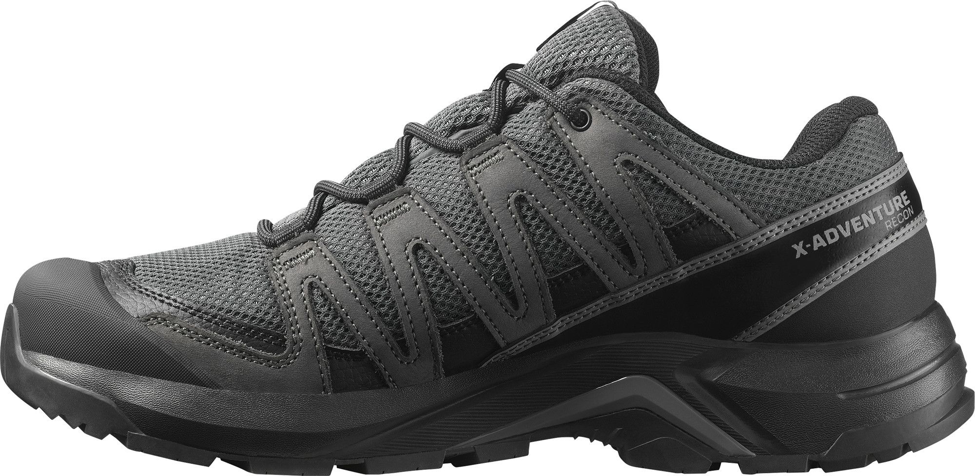 Salomon Men's X-Adventure Recon GORE-TEX er en allsidig og pålitelig tursko for menn, som passer for de fleste friluftsaktiviteter. Den solide overdelen i nubuckskinn beskytter foten mot grus og fuktighet, mens den robuste yttersålen gir godt grep i all slags terreng. GORE-TEX-membranet holder føttene tørre på regnværsdager og gjørmete stier. Advanced Chassis™ tilbyr stabilitet og støtte. Skoen er inspirert av den klassiske XA Pro-modellen. Egenskaper inkluderer GORE-TEX-membran for vanntett beskyttelse, overdel i nubuckskinn, Advanced Chassis™ for stabilitet og støtte, All Terrain Contagrip®-yttersåle for godt grep og forsterket tåkappe.