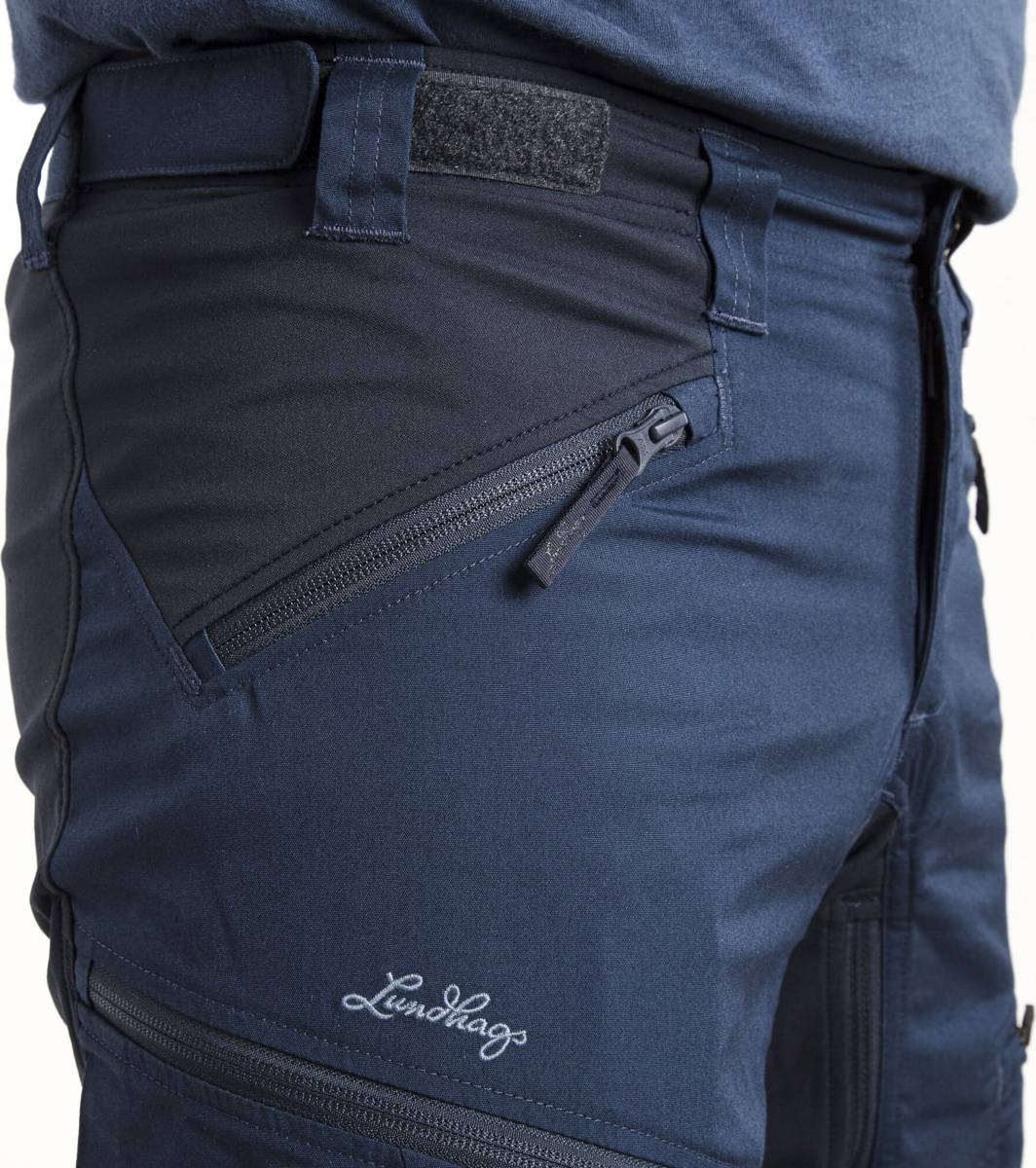 Lundhags Makke Pant er en funksjonell, lett tur- og friluftsbukse som er relativt tettsittende og passer utmerket til vandreturer og andre aktiviteter som krever bevegelsesfrihet. Buksen består av Lundhags PolyCotton og Schoeller Dry Skin stretchpaneler i sete, skritt og knærne og på innsiden av anklene er buksen forsterket med Schoeller Keprotec som gir utrolig høy slitestyrke. Buksen har romslige håndlommer og lårlommer med enkel tilgang, og blir det varmt åpner du raskt ventilasjonsglidelåsene på innsiden av lår, i håndlommer og langs nederdelen av buksebena. Andre detaljer: justerbar midje med borrelås, skrittkile for maksimal bevegelsesfrihet, justerbar benavslutning, gamasjekrok i metall, bluesign-godkjent, TOKO DWR, 100% FC-fri, normal midje, smal passform, og vekt på 436g.