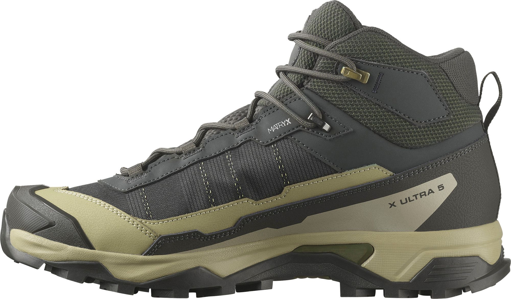 Salomon Men's X Ultra 5 Mid GORE-TEX er en lett og stabil halvhøy tursko, ideell for krevende terreng. Skoen har en slitesterk Matryx-overdel, motstandsdyktig Contagrip-yttersåle for godt grep, myk mansjett og passer til blandet terreng. Den har Advanced Chassis for stabilitet, GORE-TEX-membran for vanntetthet og overdel i syntetisk/tekstil. All terrain Contagrip-yttersåle gir pålitelig feste. Vekt: 490g.
