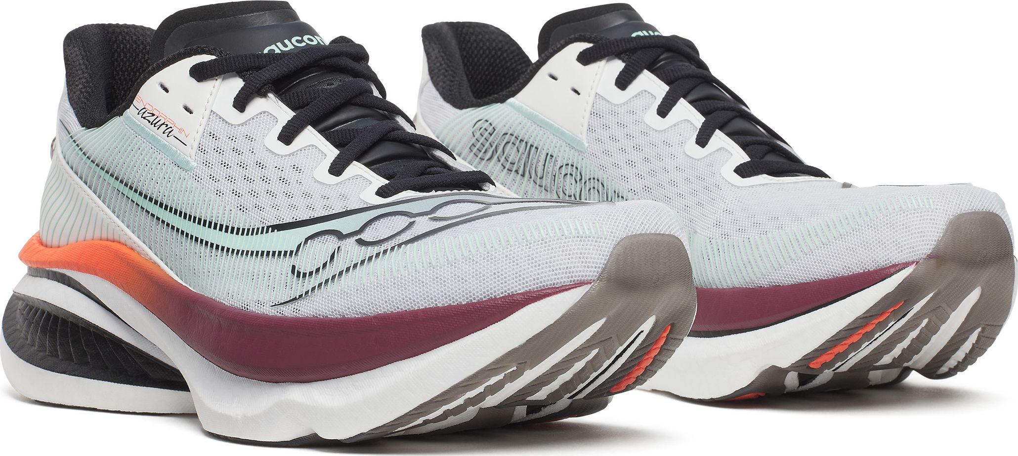 Saucony Endorphin Azura M er laget for løpere som vil ha fart i hverdagsøktene. Den lette konstruksjonen kombinert med energisk demping gjør det enkelt å holde tempoet oppe – enten du løper vanlige treningsøkter eller ønsker litt ekstra fart på intervallene. Den responsive PWRRUN PB-dempingen gir en myk, spenstig følelse under foten og sørger for god energiretur i hvert steg. SPEEDROLL-teknologien skaper en naturlig rullende overgang fra hæl til tå, som gir mer flyt og fremdrift i steget. Yttersålen i XT-900-gummi gir godt grep og høy slitestyrke, slik at du kan presse tempoet med trygghet. Overdelen gir en adaptiv og sikker passform som holder foten komfortabel gjennom hele løpeturen. Egenskaper: lett og responsiv løpesko for daglig trening og tempoøkter, PWRRUN PB-demping for spenstig energiretur, SPEEDROLL-teknologi for jevnere og raskere steg, støtte: nøytral, overdel: konstruert netting med resirkulerte materialer, mellomsåle: polyeterblokkamid (PEBA)-skum (PWRRUN PB), yttersåle: karbongummi (XT-900), innersåle: superresponsiv innersåle (SRS), dropp: 8 mm (40/32mm), vekt: 240g.