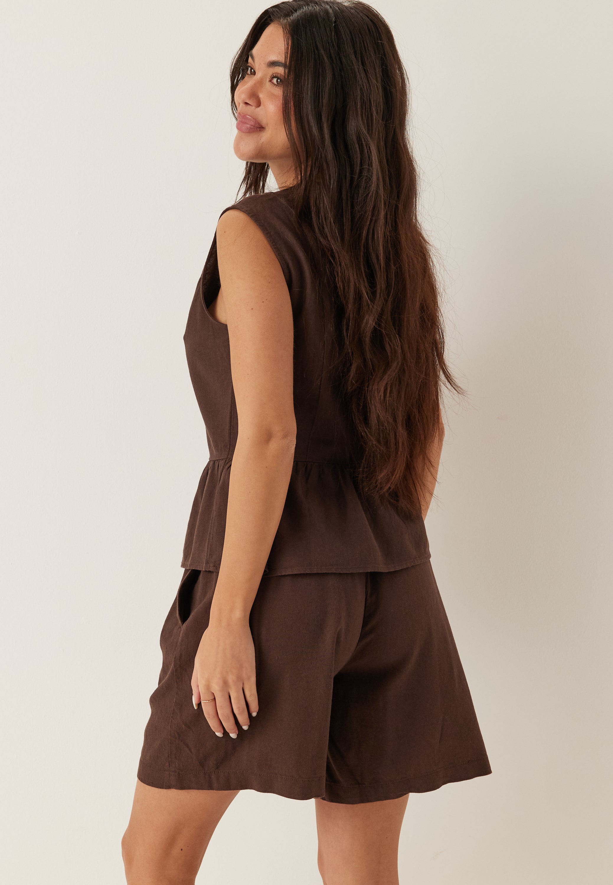 Shorts fra Bubbleroom i vevet, uten stretch materiale. Har elastisk midje, avslappet passform, lommer og er ufôret. Inneholder LENZING ECOVERO viskose, en fiber produsert med en mer ressurseffektiv prosess og lavere klimapåvirkning sammenlignet med tradisjonell viskose. De fleste kjemikaliene som brukes i produksjonen resirkuleres i en lukket prosess. Sertifisert i henhold til EU Ecolabel.